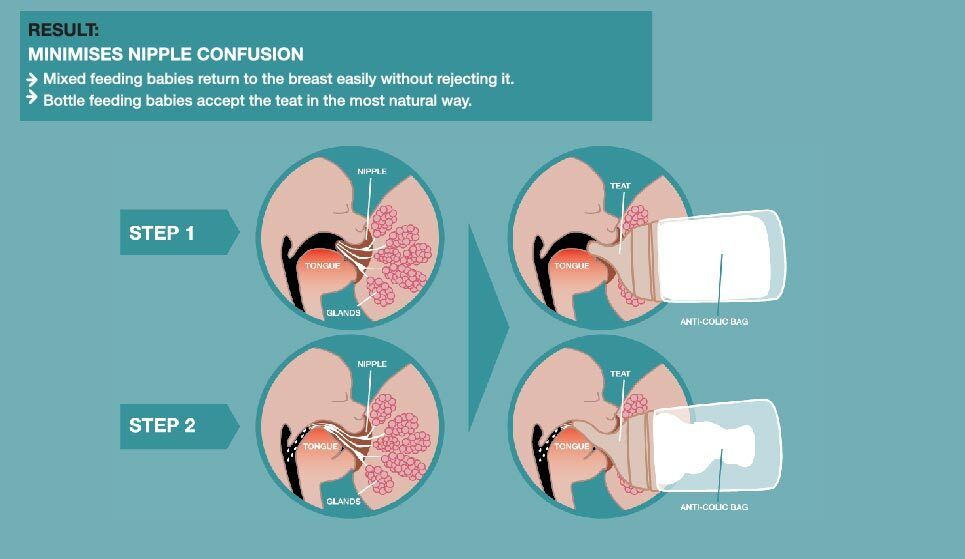•奶嘴傾斜設計: 尊重乳房的自然曲線確保寶寶頸部的正確位置,帶來輕鬆的餵奶體驗有助於防止逆流甚至耳部感染 •無氣泡: 防止寶寶吸入空氣,減少脹氣情況,防止奶氧化避免奶中的珍貴營養成分流失,尤其是母乳 •減少乳頭混淆: 親餵寶寶在從乳頭到奶瓶的交接不混淆減少抗拒,奶瓶寶寶以更天然的方式進食更容易接受 |