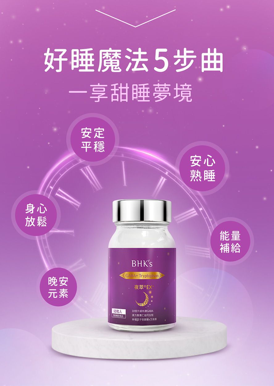 夜萃EX+ 素食膠囊 簡介 【夜間好睡 進入夢鄉】 色胺酸 X 酸棗仁萃取物 調節入睡品質,開啟熟睡模式。 專利GABA+穀維素+芝麻萃取物 增添睡意,帶來真正的放鬆休憩。 維生素E、B6、B12 增進神經系統健康,帶你進入甜甜夢鄉。 獨家中西合併配方,好睡因子讓你夜晚放鬆, 天天睡得沉,起床精神好。 每天1粒,於睡前1小時以開水吞食,欲加強者建議每天2粒,1日請勿超過2粒,多食無益。 |