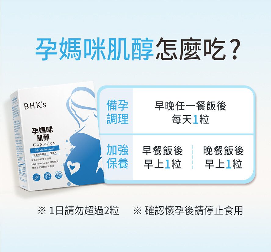 兩大關鍵營養素,為準媽咪做好備孕的萬全準備: 1.肌醇 在體內扮演著傳遞訊息及供給營養的角色,有助卵子發育更為成熟,提高受精率,也增加受孕的機會; 亦可以與膽鹼在體內合成卵磷脂,負責脂肪及膽固醇的新陳代謝作用, 2.葉酸 有助胎兒正常發育與生長;含維生素B9,有助於紅血球的形成 特別推薦給計劃生育、高齡產婦、計劃試管備孕的準媽咪 孕媽咪肌醇給予胎兒最適合的環境,卵子發育成熟,心想事成好孕到 食用方式: 每日選一餐後補充一粒,建議一天勿補充超過2粒。 |