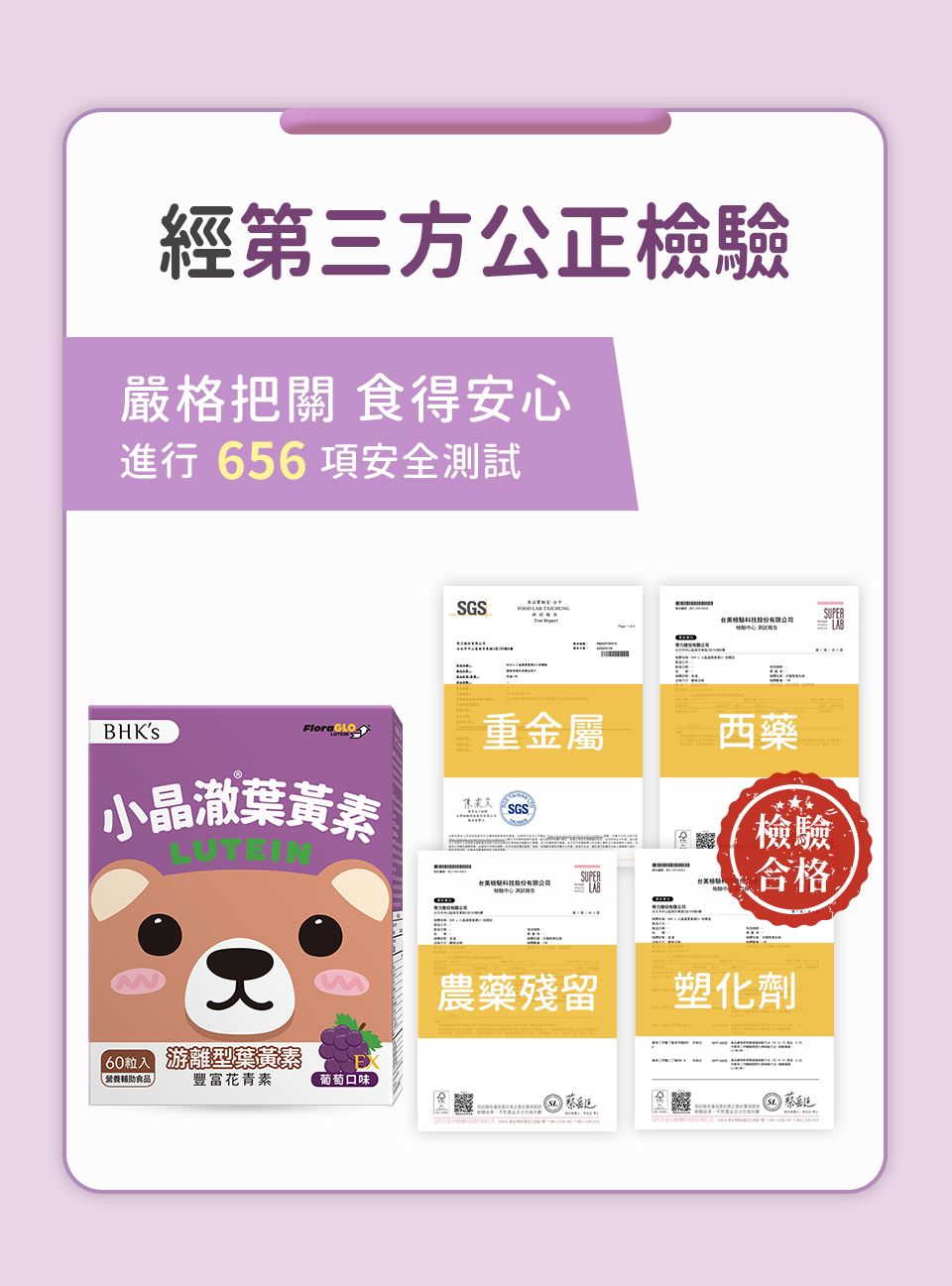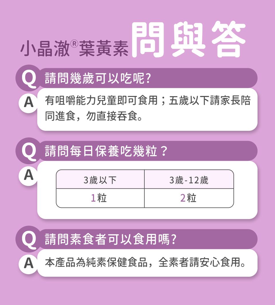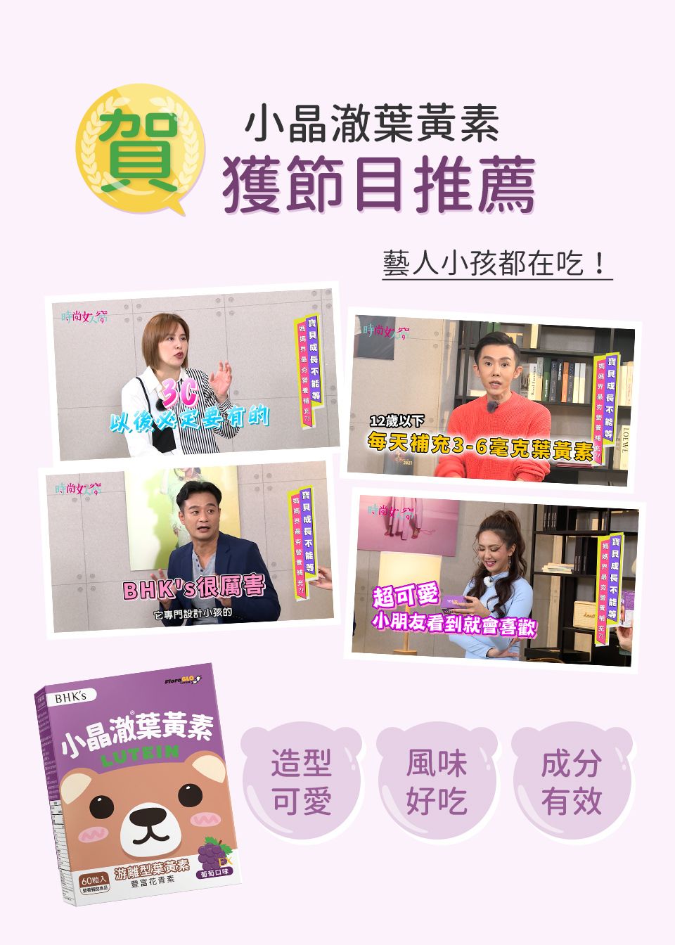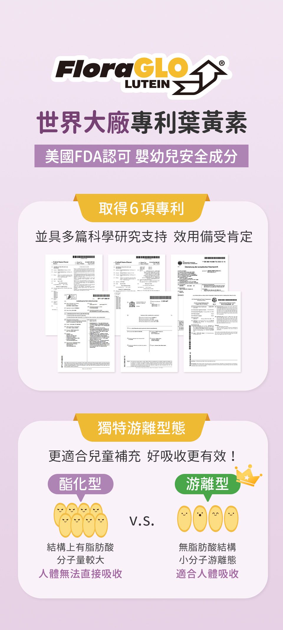 4大亮眼成分為兒童量身打造的葉黃素,保護孩子視力: 1. 專利金盞花萃取:美國葉黃素,游離型態好吸收,保護孩子視力最好的葉黃素 2. 智利酒果:含有最高等級花青素「翠雀花素」,有效滋潤眼睛 3. 藍莓x黑醋栗:豐富莓果多酚,讓孩子不再感到眼睛酸澀 4. β-胡蘿蔔素:最安全的維生素A前驅物,有助於維持暗處視覺。 |