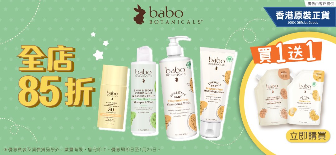 Babo Botanicals® 為家庭創造安全而天然的健康和護膚方案。起源於美國賓夕法尼亞州的農田,採用植萃的成份研製,為敏弱的頭髮和肌膚帶來至優的修護功效。