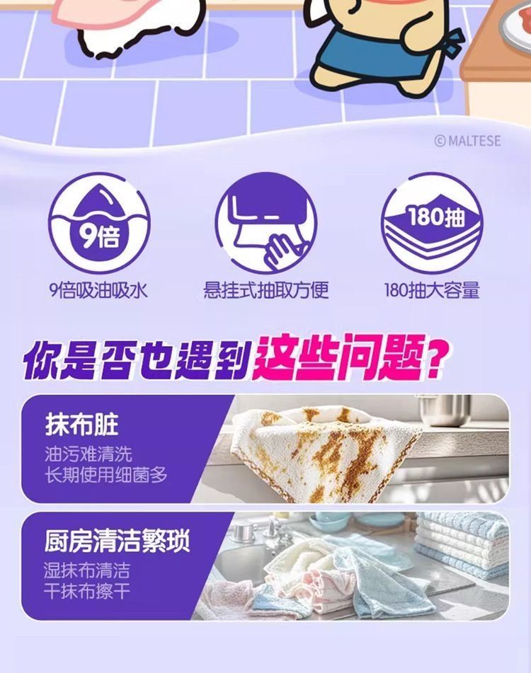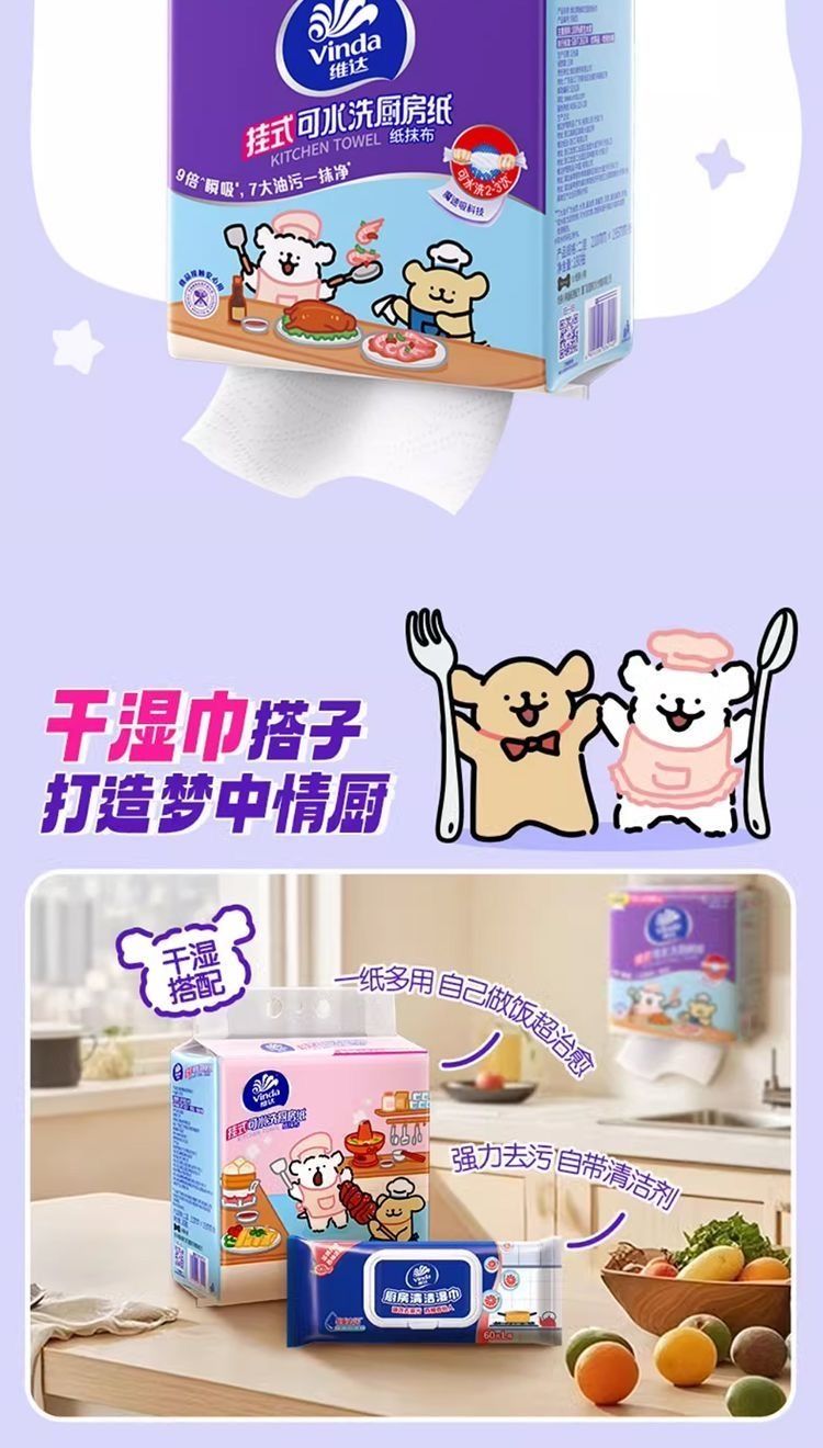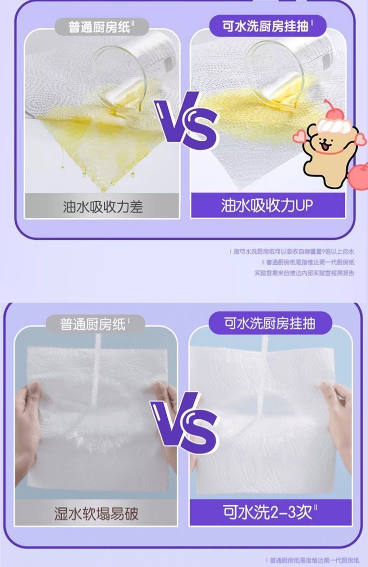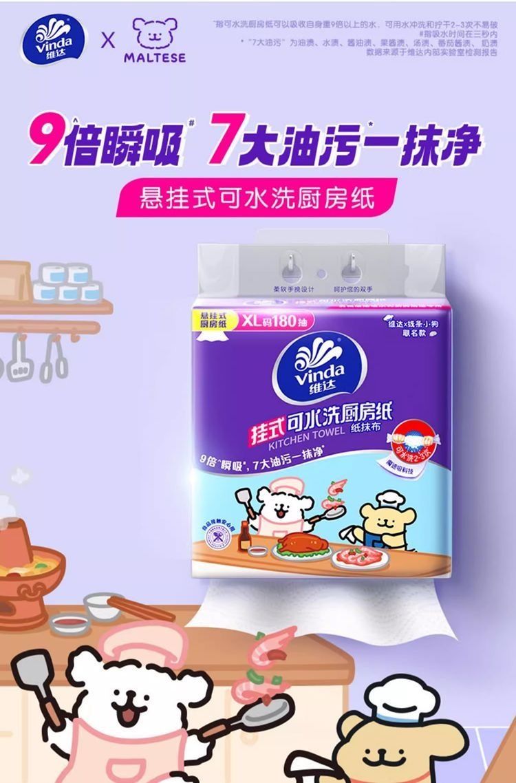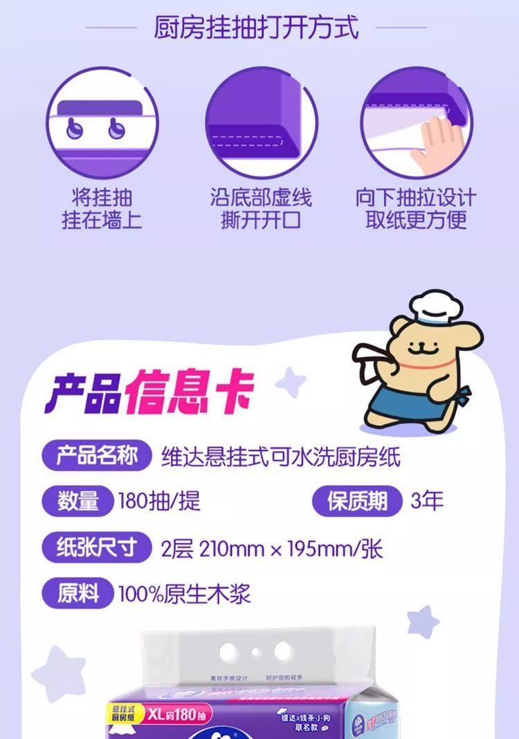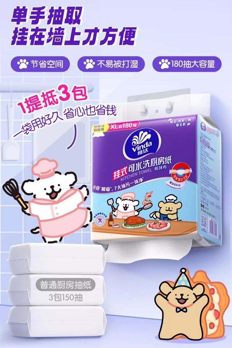 180抽*4提 維達懸掛式抽紙厨房专用衛生紙大包装,XL码2层210mm*195mm
