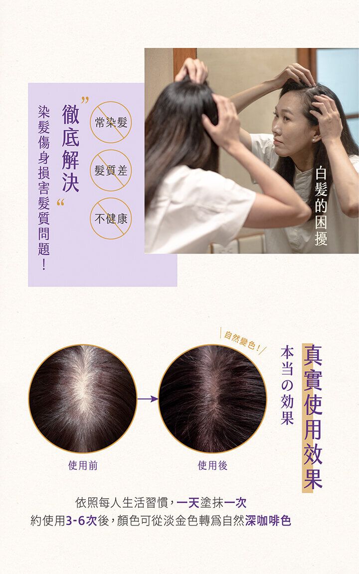A:光彩使用量則是看每個人使用的髮量多寡有所不同,若是使用在每月新生白髮上, 可以用3-6個月沒問題。