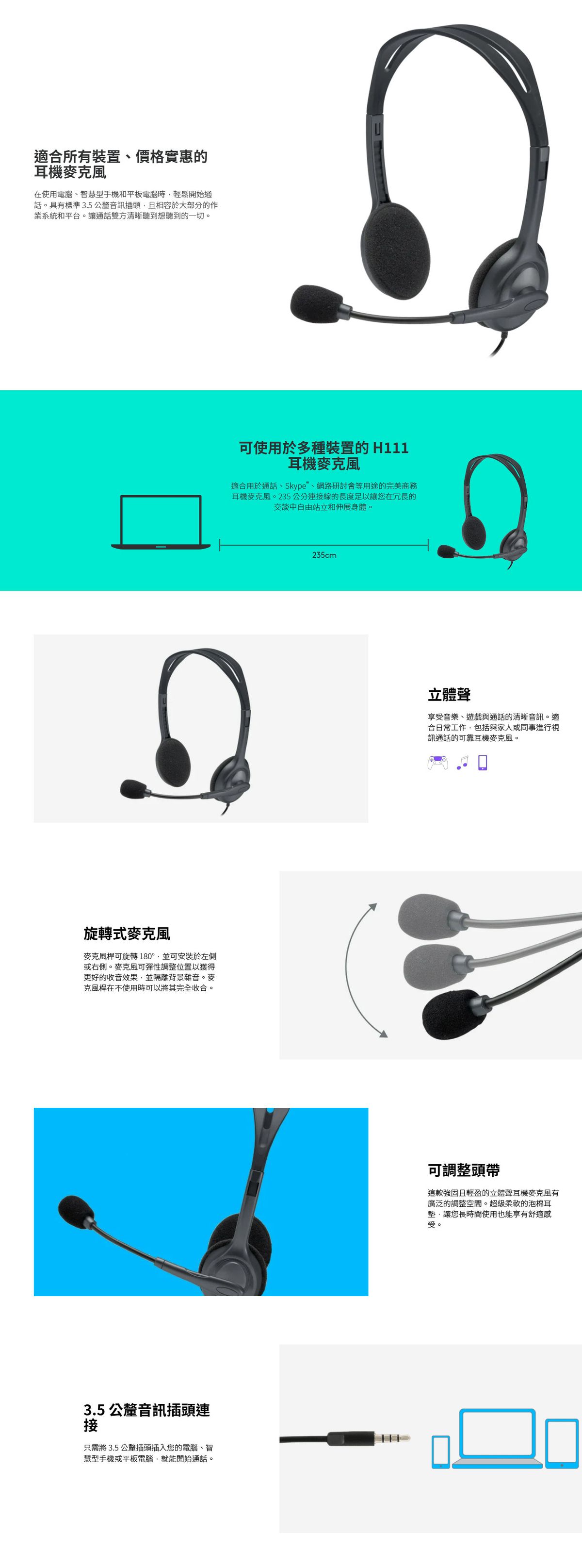 • 立體聲 • 旋轉式麥克風 • 標準 3.5 厘米音訊插孔