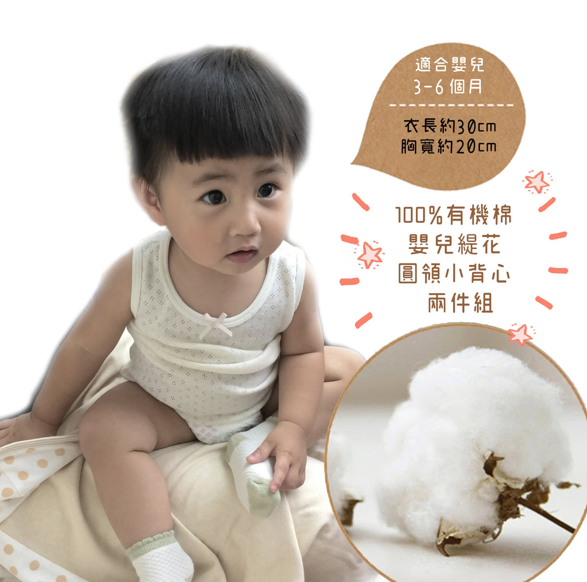 * 有機棉小背心造型可愛,適合外出穿著。