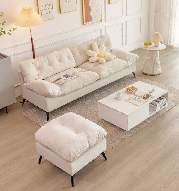 意式極簡小戶型雲朵沙發(米白色絨布)(大三人210CM)#H148064184