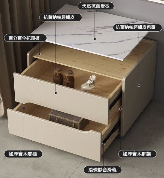 | 商品簡介 | 全實木岩板床頭櫃(淺灰色)(尺寸:長40x寬40x高48cm) |