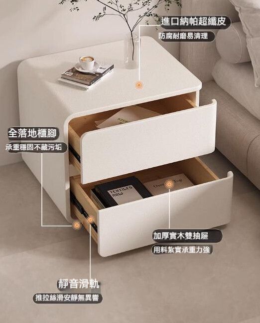 | 商品簡介 | 奶油風實木床頭櫃(卡其色左款)(尺寸:長45x寬40x高47cm) |
