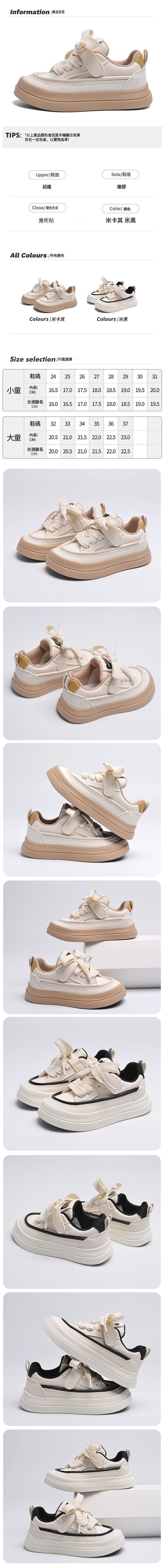 男童女童休閒板鞋小白鞋(米卡其 24碼-37碼)(下單後請聯酪客服確認發貨尺碼)