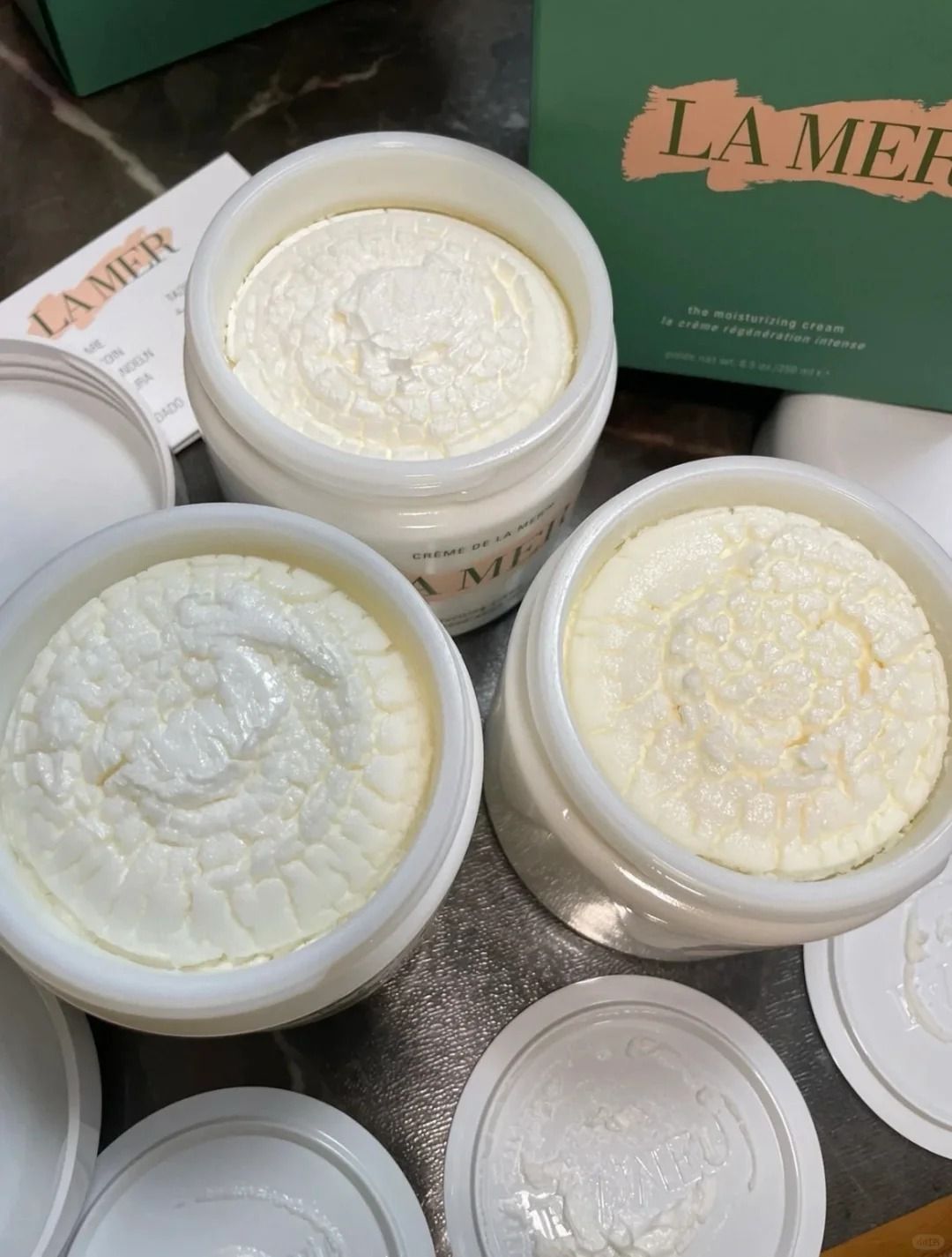 備有五款獨特質感,賦予舒緩敏感肌膚、灌注水凝呵護效能,再生年輕亮光。Crème De La Mer 精華面霜能於3天內為乾涸肌膚灌注水潤呵護。 使用方法 煥膚步驟 以指腹溫熱面霜數秒,直至呈現半透明狀,可使面霜功效的完全釋放。輕柔按摩於臉部和頸部肌膚,直至肌膚完全吸收。 |