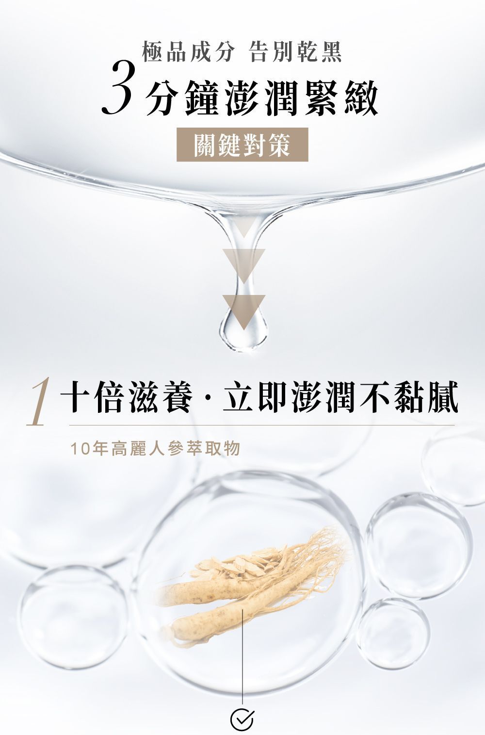 -專業PRP技術,吸收迅速,彈潤緊緻 -人蔘、當歸、大豆 精華滋養回春 -女人必備保養秘密 -日常保養、事前3分緊緻有感 -20mL