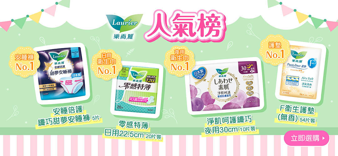 源自日本的Laurier致力為亞洲女性提供多樣化的女性衛生用品,全方位呵護女性不同日子的需要,無論任何時候都可以無憂做自己,日夜零負擔!