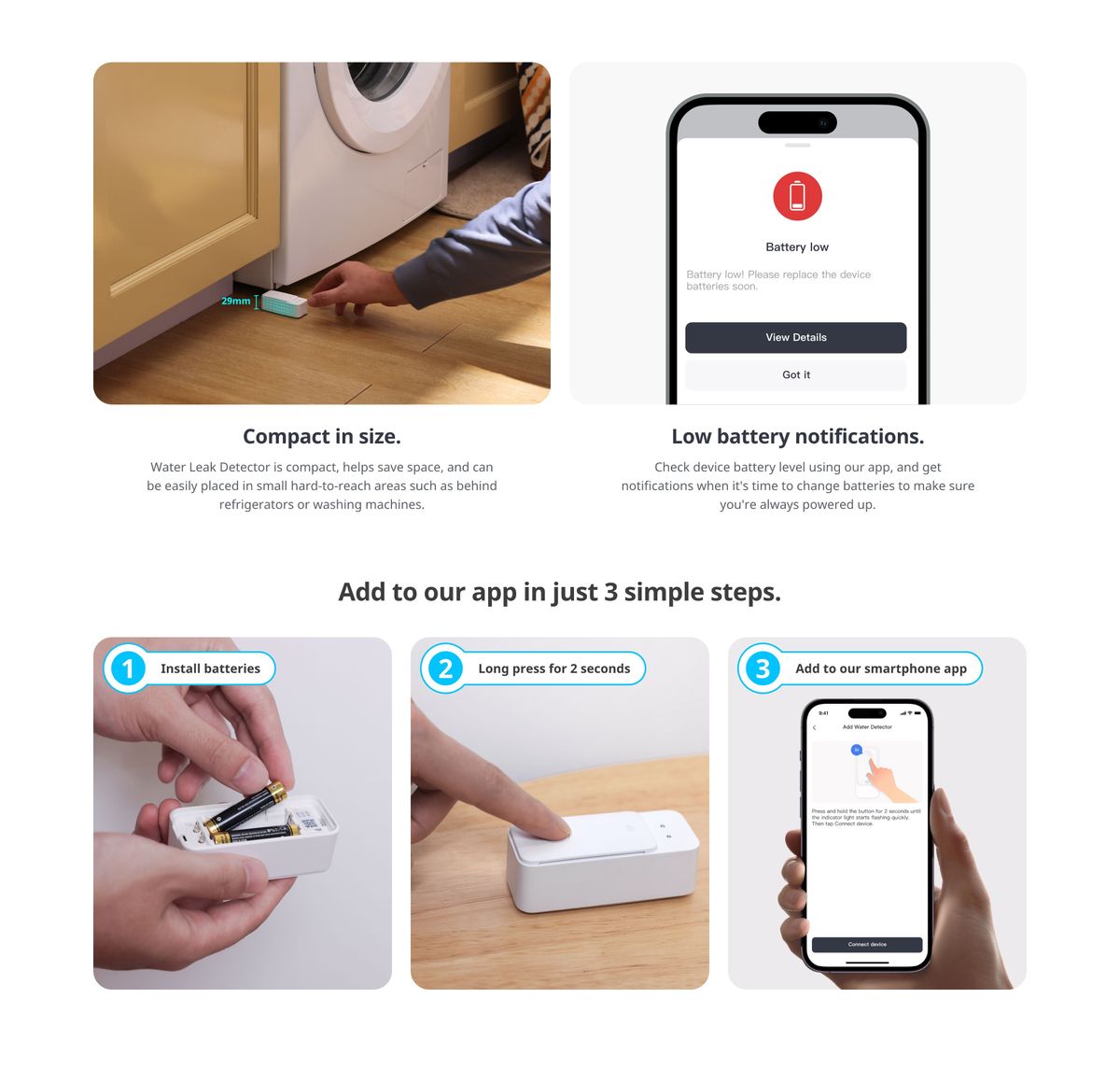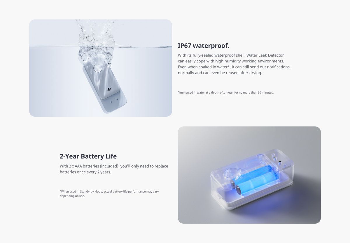 ✔️直接連接WiFi輕鬆設定使用 (無需配HUB) ✅當偵測到滴水、洩漏、浸水或脫水時,裝置會發出100dB高音警報系統,同時會即時透過App向你警報(可set Email通知),讓您即使不在家,也可以立即採取行動,從而減少潛在破壞和損失 ✅ 配備帶有1M加長感測器,不僅可以幫助您偵測水位的變化,還可以説明您偵測隱藏區域的洩漏。適用於家庭、倉庫、地下室、水槽、熱水器、管道等 ✅頂部、底部和加長感測器配備了六個感測觸點,可偵測到僅 0.5 毫米的低水位 ✅IP67防水:漏水偵測器具有IP67防水等級,即使在潮濕環境下也能確保其耐用性和可靠性 ✅長達2年的電池續航力,為連續監測提高了便利性和可靠性 |