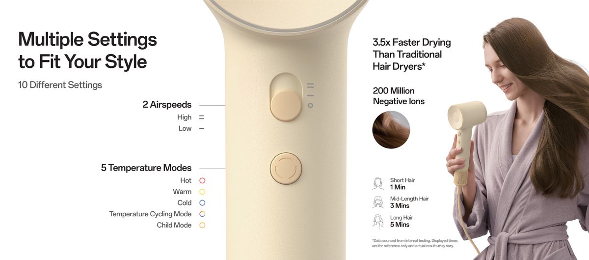 打破傳統 | 全新專屬顏色 | 探索升級魅力 • 摩打轉速提升3000轉/分鐘 - 3分鐘高速快乾 • 溫度微處理速度提升60% - 實時關注頭髮溫度變化 • 乾髮效率提升30% - 助你節省時間,讓你不再等待 • 新增兩種兒童模式 - 告別高風溫潛在傷髮危害 • 10種強效護髮組合模式 - 包括6段風溫和2級風速 • 2億濃度負離子 - 護髮同時有效地撫平毛躁提升光澤 *香港原裝行貨,2年保養 |