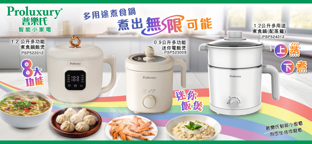 Proluxury普乐氏小家电,为顾客提供不同的需要,设计不同的小家电,让生活增添小乐趣。普乐氏拥有一系列型格和智能化设计的小家电,包括电饭煲、气炸锅、煮食小家电、特色烹调小家电、个人护理小家电及季节性小家电等。为大众提供每一日所需的小型家庭电器,并且承诺开拓其他智能性的产品,令顾客享有最优越和方便舒适的生活品质。