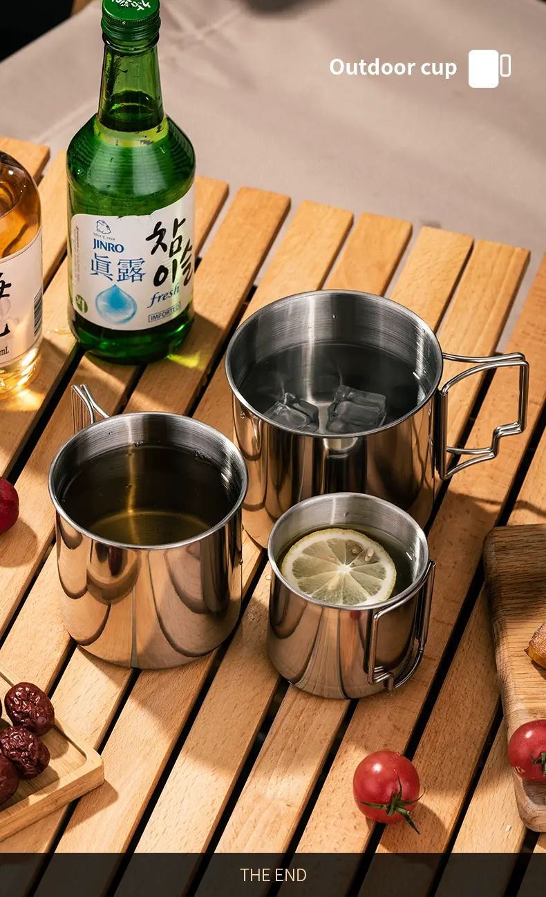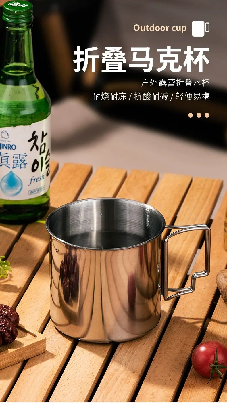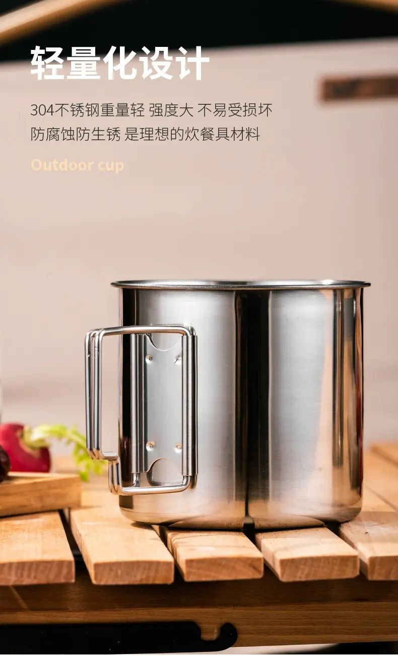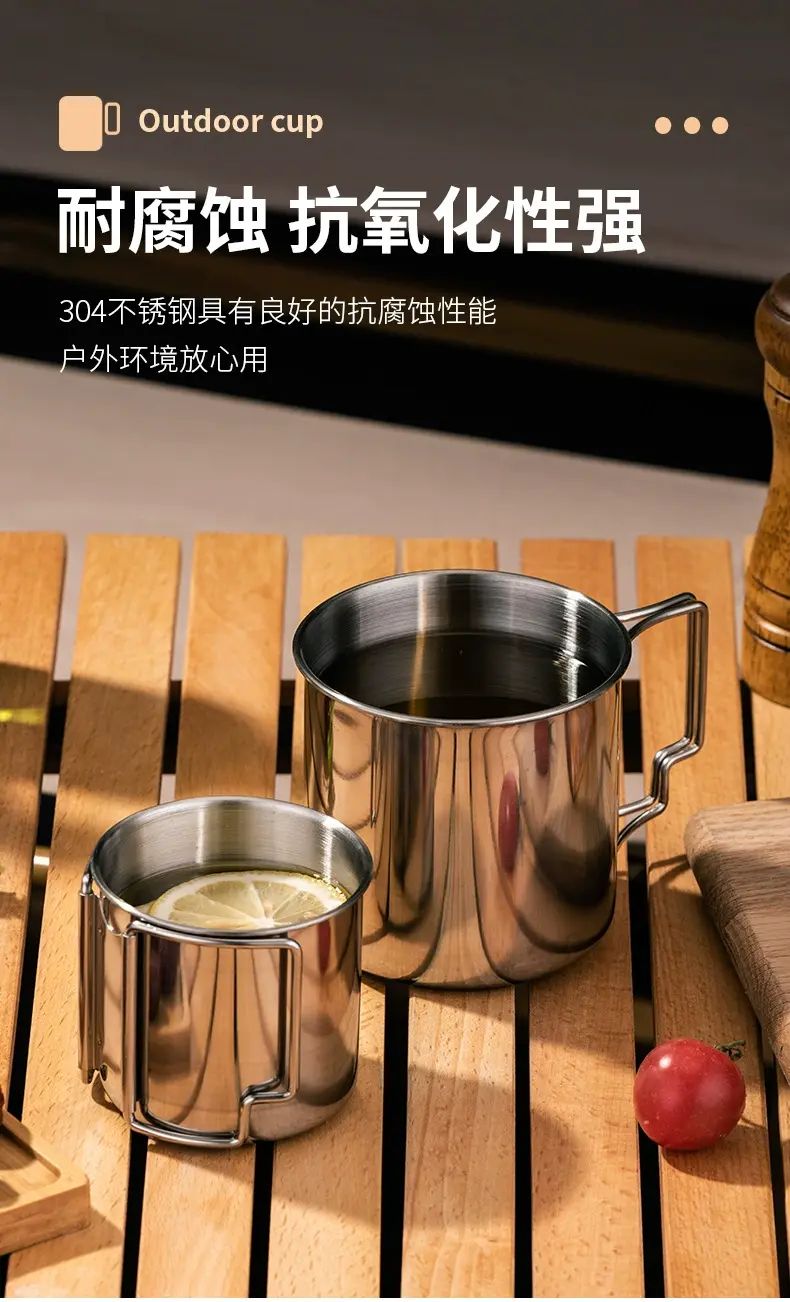 HUI LING YANG-徽羚羊 -9cm 露營口杯 戶外 水杯 便攜式 可摺疊手柄 登山野餐茶缸 耐燒耐凍 抗酸耐鹼 輕便易攜 不易受損 食品級304不鏽鋼 甄選食品級鋼材 不易滋生細菌
