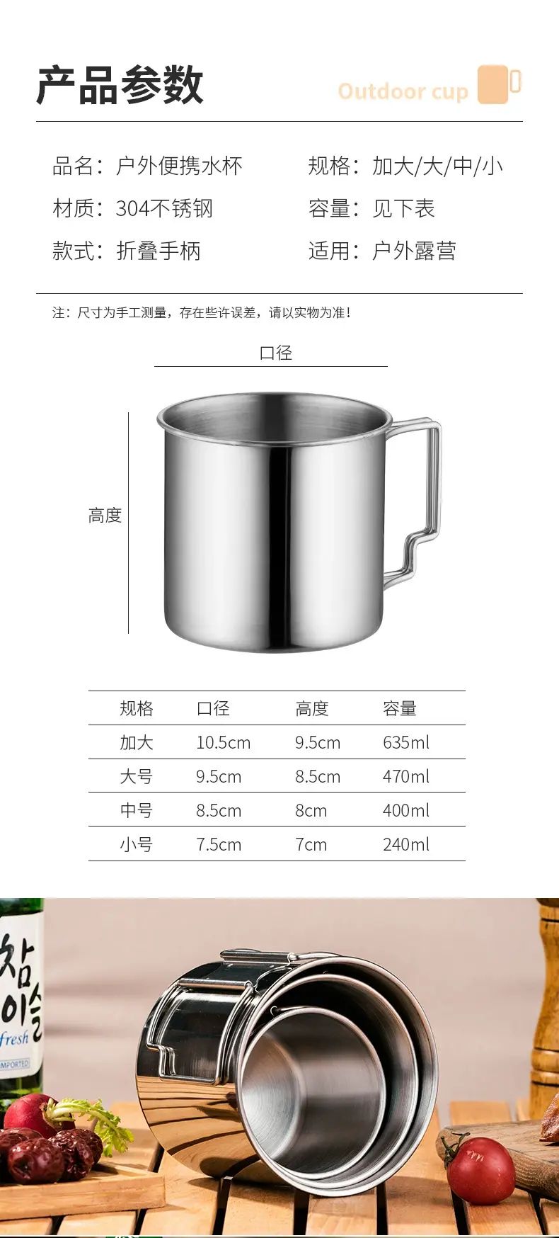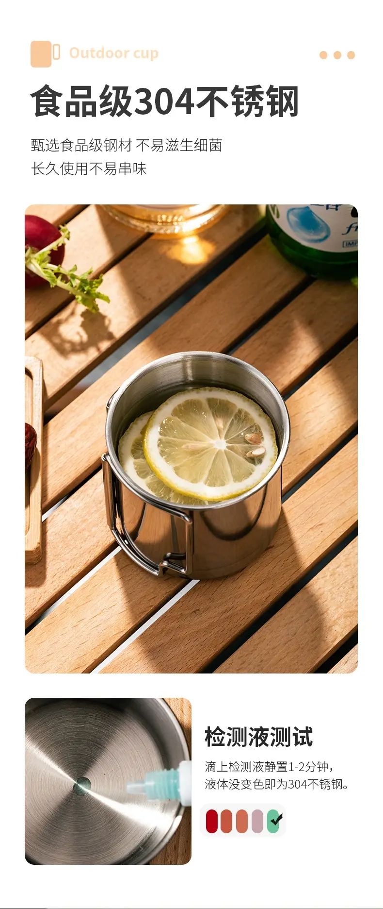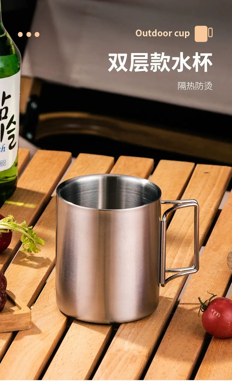 HUI LING YANG-徽羚羊 -9cm 露營口杯 戶外 水杯 便攜式 可摺疊手柄 登山野餐茶缸 耐燒耐凍 抗酸耐鹼 輕便易攜 不易受損 食品級304不鏽鋼 甄選食品級鋼材 不易滋生細菌
