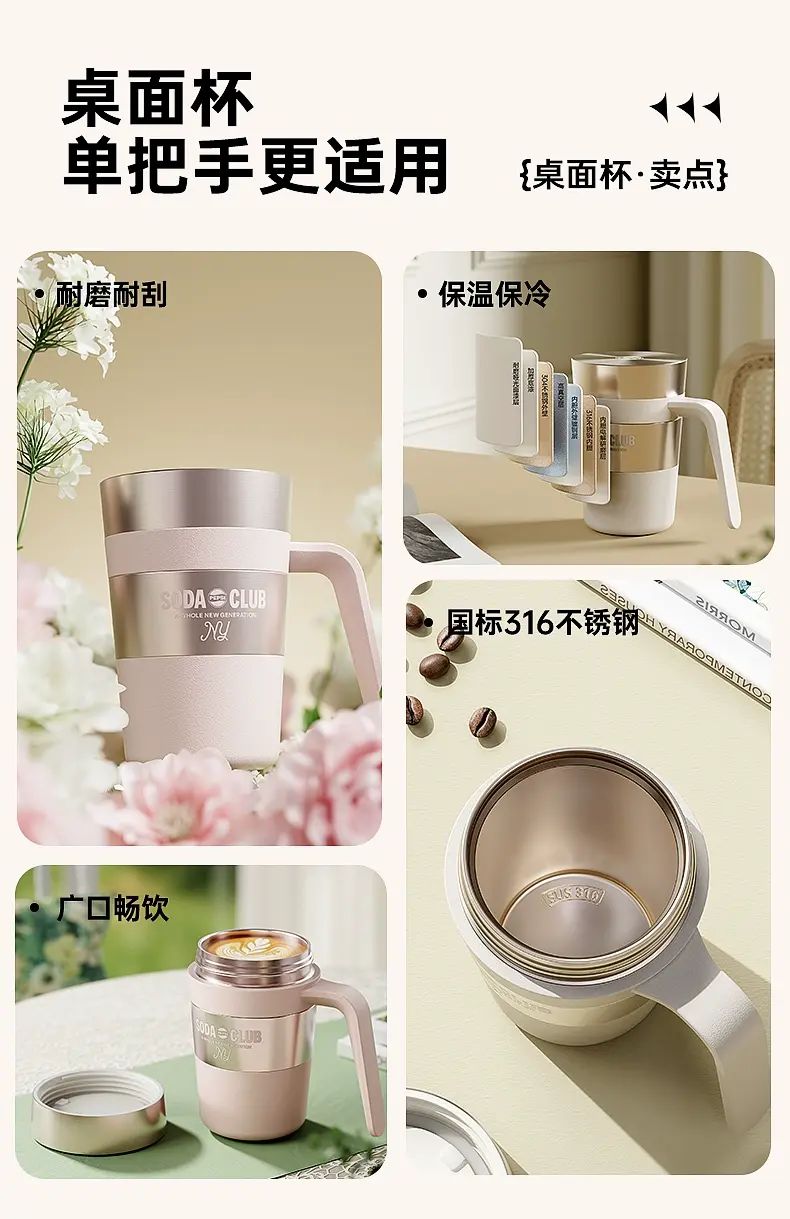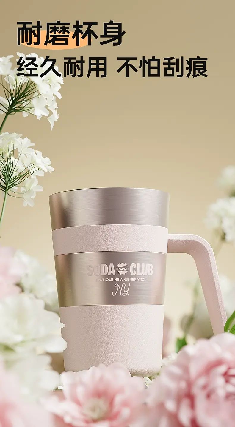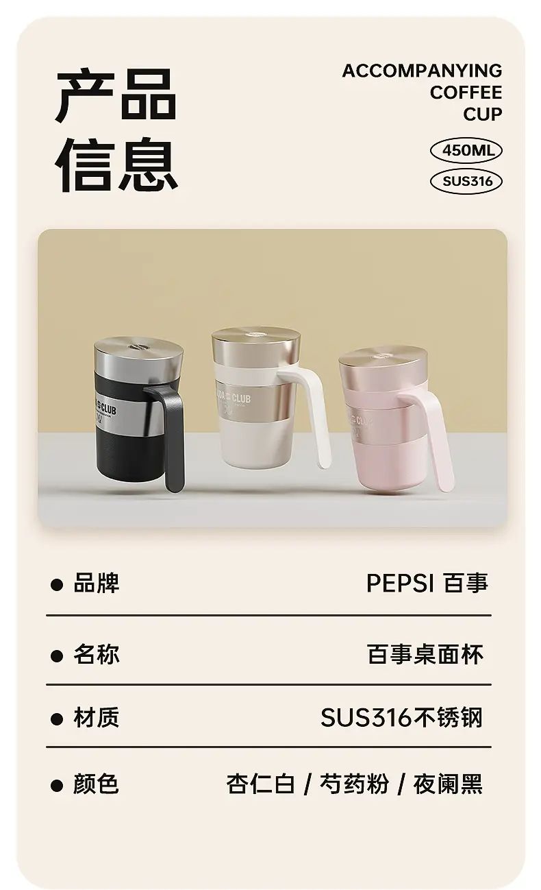 PEPSI百事桌面保温咖啡杯316不锈钢水杯男女生办公室水杯2025新款;茱萸粉1 450ml