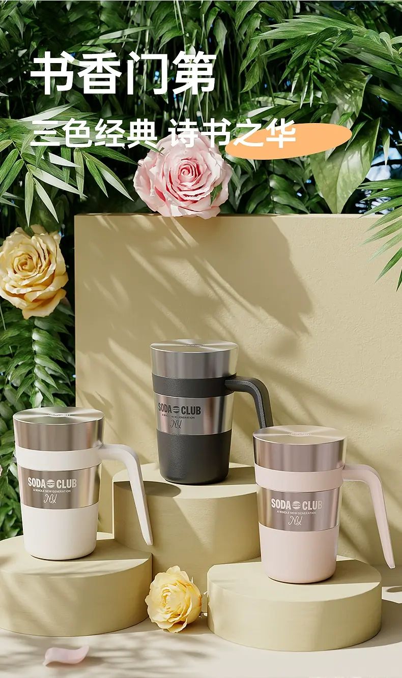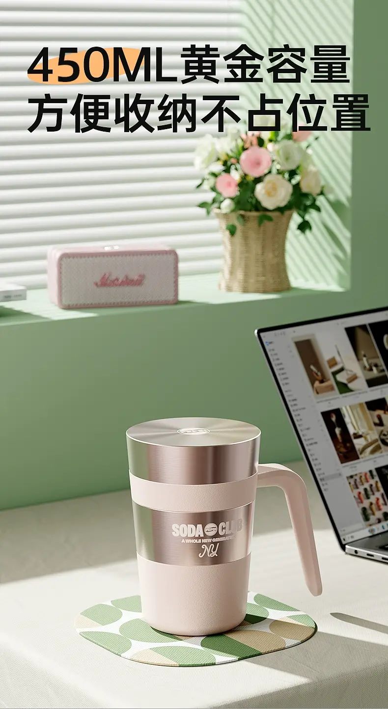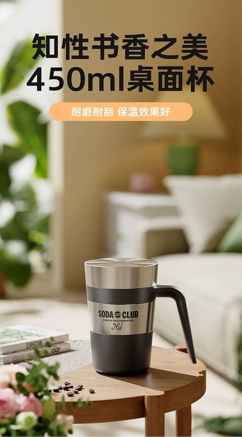 PEPSI百事桌面保温咖啡杯316不锈钢水杯男女生办公室水杯2025新款;茱萸粉1 450ml