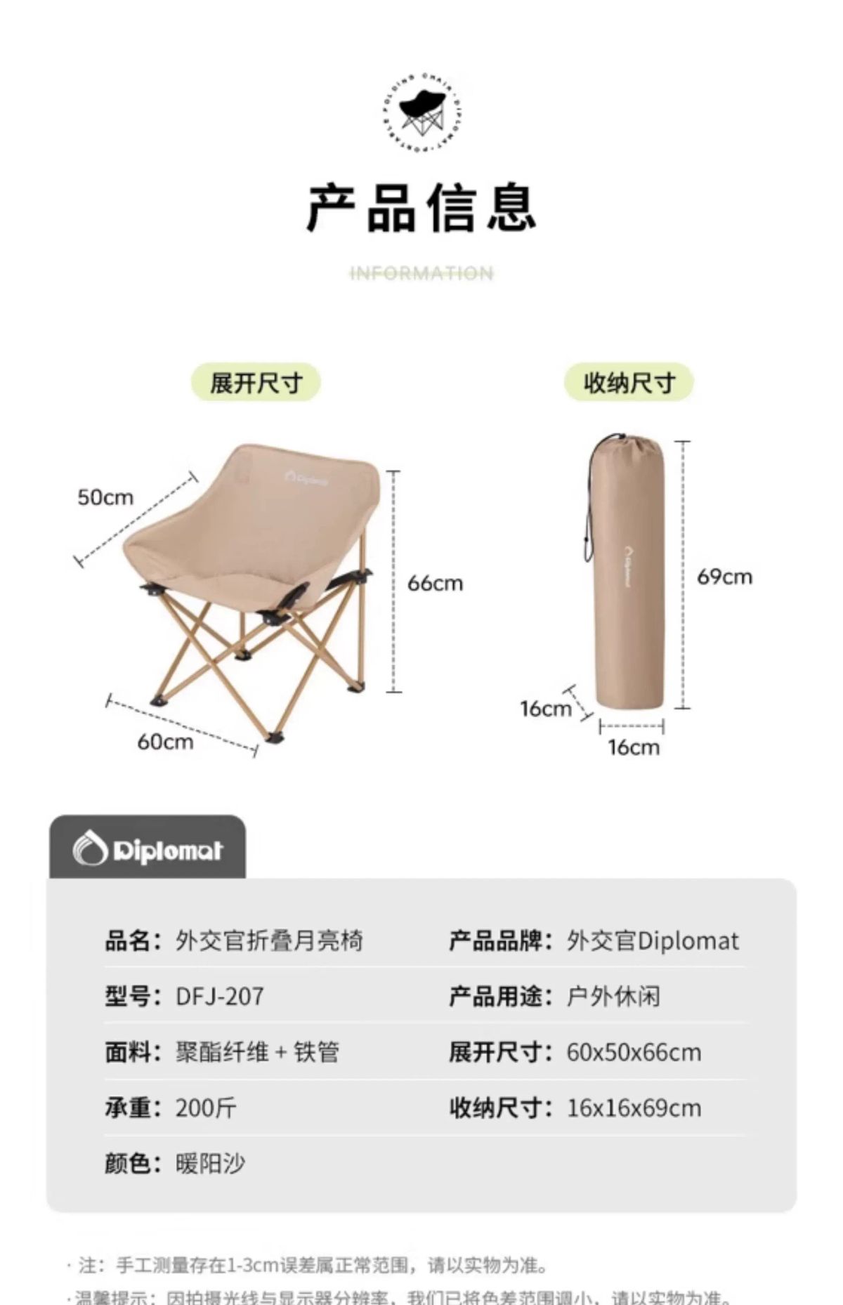 外交官折叠月亮椅DFJ-207 户外露营折叠椅便携椅子 ;暖阳沙 |