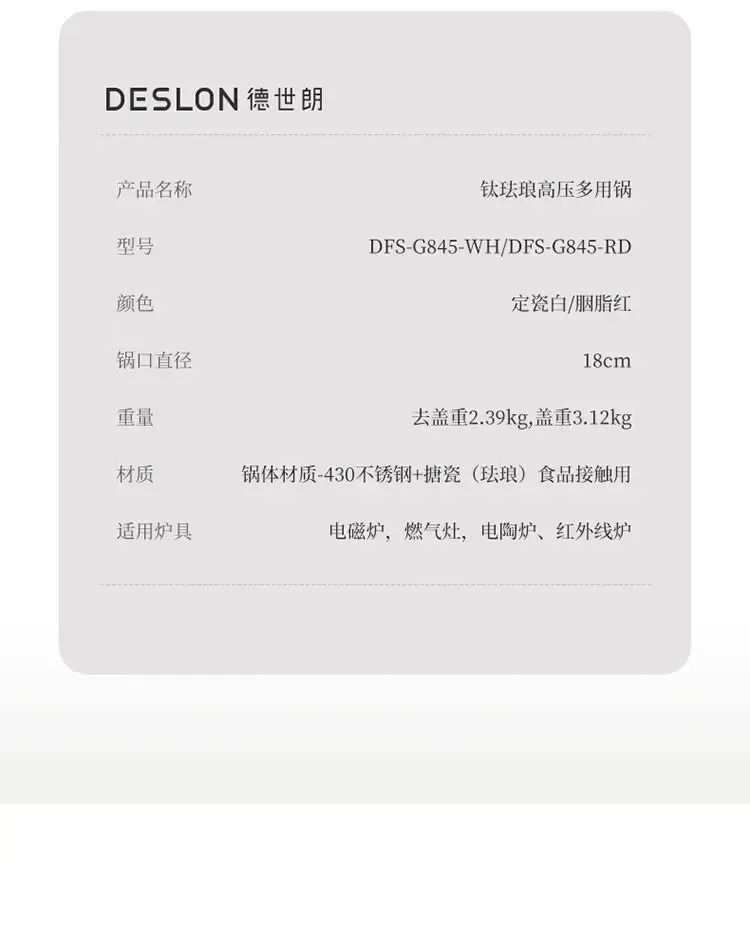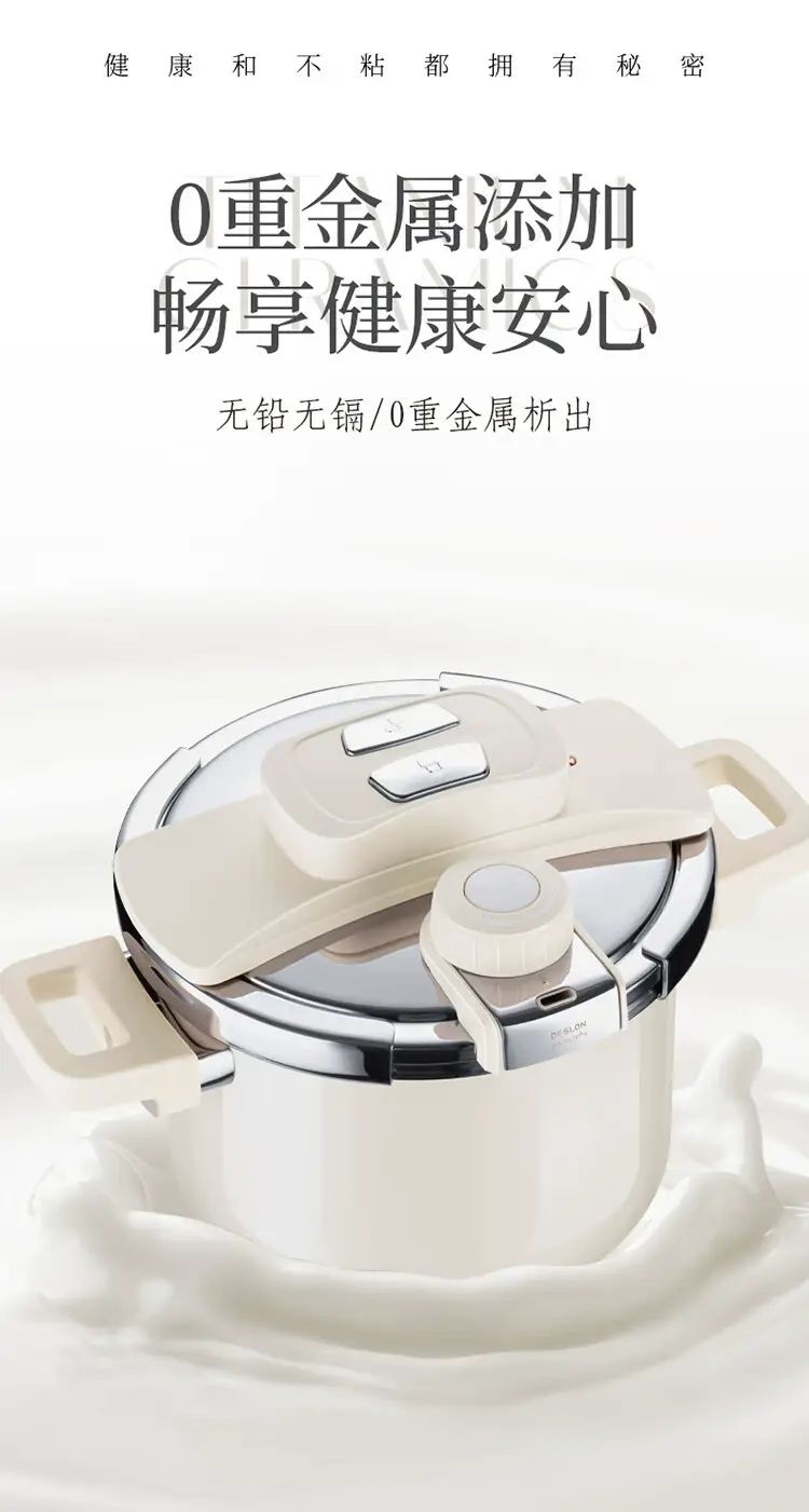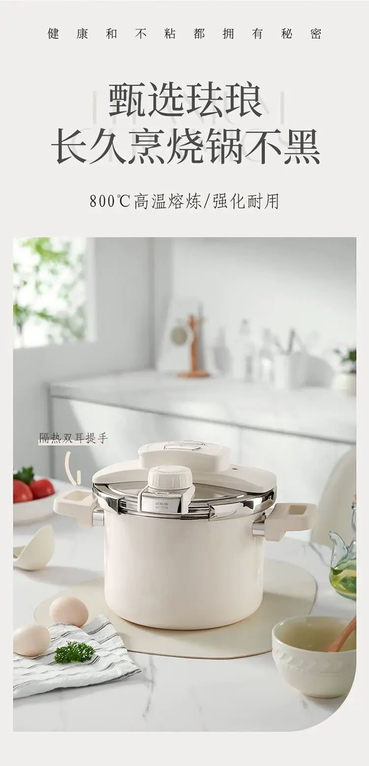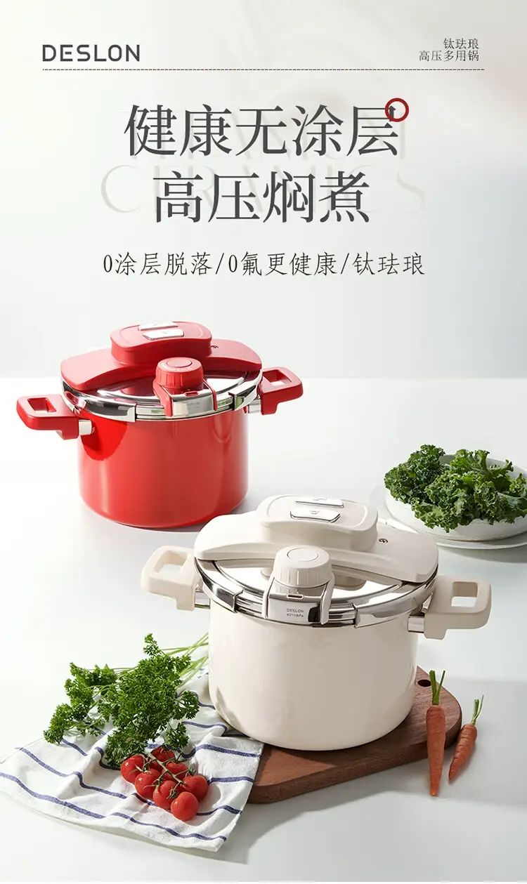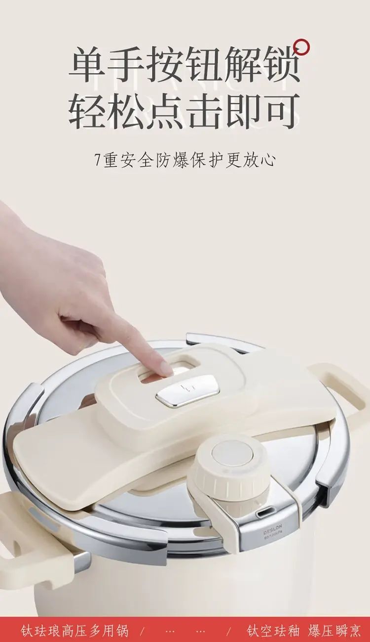 产品配置:22cm高压锅+不锈钢计时器 锅身材质:430不锈钢+搪瓷(珐琅)食品接触用 锅盖材质:304不锈钢+硅胶 采用国家标准不锈钢材质 导热迅速均匀 健康耐用 卫生防腐蚀 保障饮食安全 锅体内外壁采用珐琅工艺 让厨房更加靓丽 让家的感觉更好 立体固齿严密咬合锅盖 牢牢锁住锅身 防止锅盖在蒸煮过程中跳动漏气 加倍保护 加倍保险 多重安全装置 保障锅内压力始终处在安全范围内 确保压力锅正常工作 层层防护 安全放心 压力调节阀 多档调压 不同食物不同压力 烹饪更科学方便 保险柜式精密按键开启方式 单手操作 简单更惬意 人性化手柄设计 手感舒适 隔热防滑 |