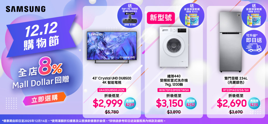 *升級除舊服務是指由商戶於送貨當天同時回收舊電器,但需要額外向送貨員支付150港幣。