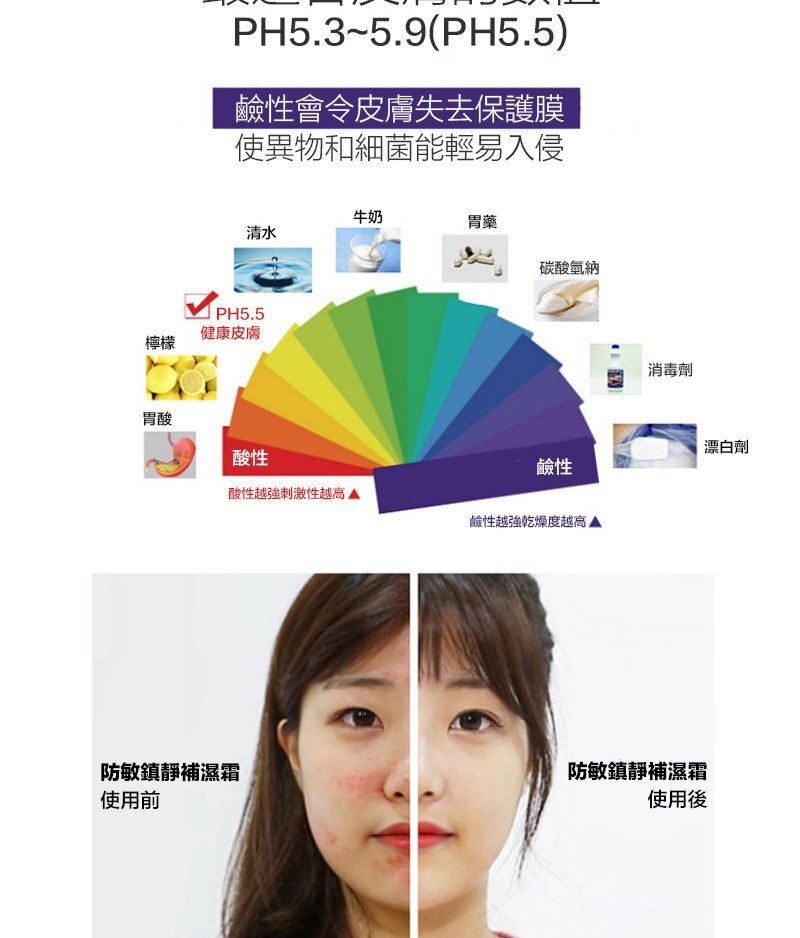 | 商品簡介 | PH維持5.3~ 5.8鎮靜抗菌,消炎作用可以即時舒緩敏感情況修護返紅血絲過多既問題可以強化返皮膚抵抗力促進皮膚代謝,改善暗啞問題回復光澤,減少敏感情況出現舒緩因為缺水而產生既痕癢同泛紅 |