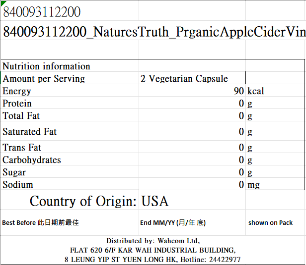 180 粒素食膠囊 有機蘋果醋超強效 平行進口