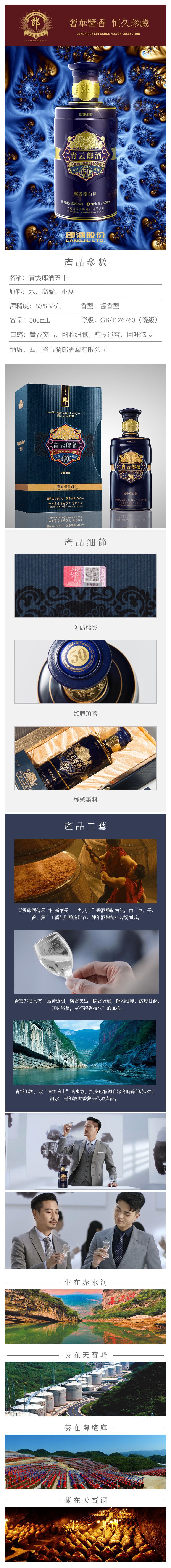 『根據香港法律,不得在業務過程中,向未成年人售賣或供應令人醺醉的酒類。』 “ Under the law of Hong Kong, intoxicating liquor must not be sold or supplied to a minor in the course of business.” 酒精度: 53%vol 香型: 醬香型 產地: 四川瀘州 原料 : 水 , 高粱 , 小麥 |