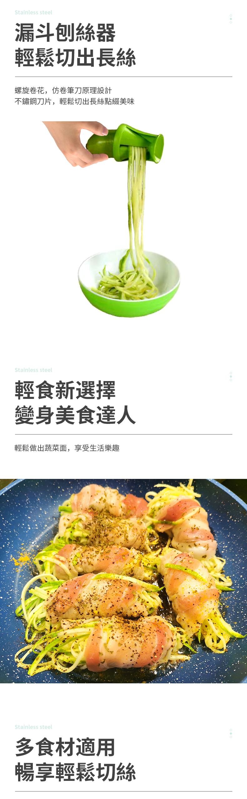 SpiralEZ 蔬果刨絲器 旋轉刨絲刀 低卡意粉 素食,減肥佳品 使用日本不鏽鋼刀片 FDA食品級材料 自主設計產品 |