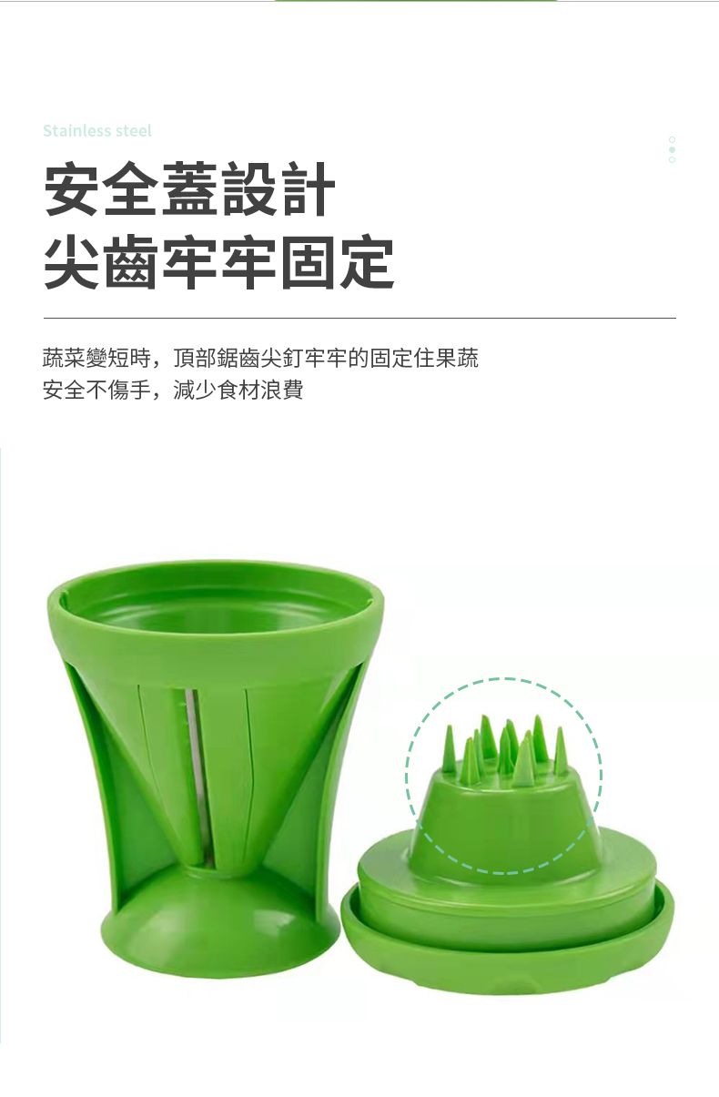 - 蓋子的尖錐,可方便將瓜菜的末端穩定刨到尾,絕不浪費