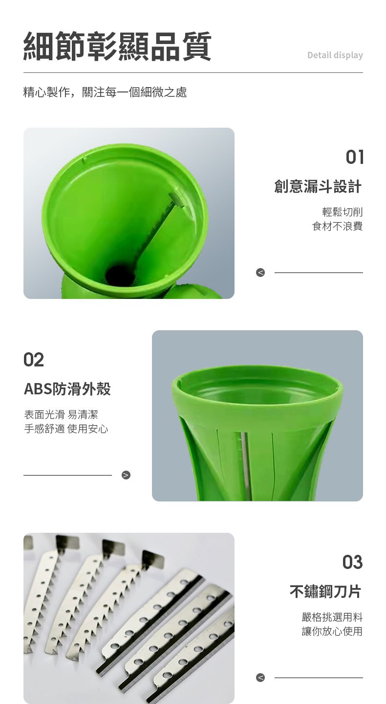 - 適用於蘿蔔、青瓜、翠玉瓜等