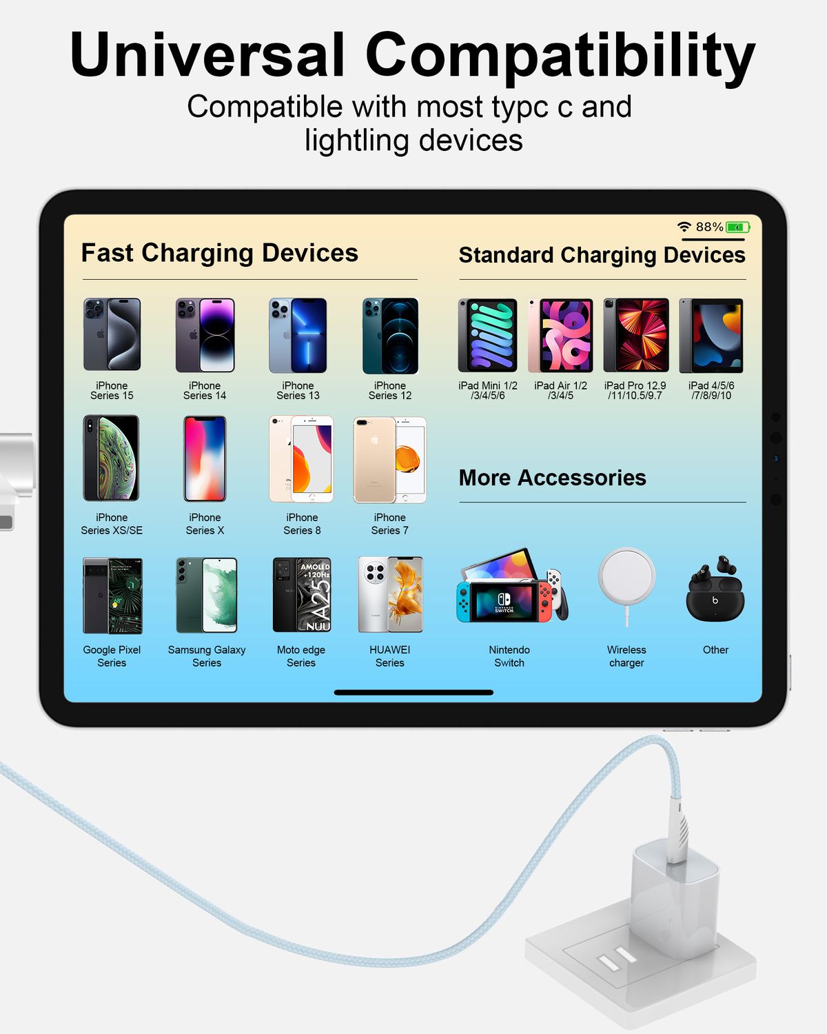 超坚韧编织2合1 快充充电线PD27W+PD65W充电线 超坚韧编织线,可承重25KG拉力 PD65W快充线,30分钟手机充满75% 480mbps传输速率,充电数据传输两不误 Type-C转Lightning,Type-C转Type-C,广泛兼容手机平板笔记本等设备 *此产品支持国内同价而且8小时派送 |
