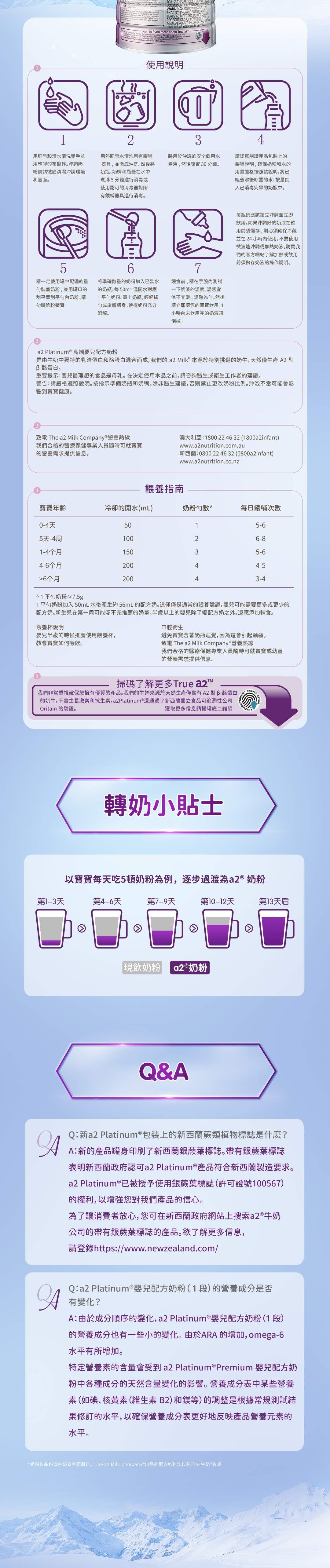 有效日期:2027年3月 - 優質嬰兒配方白金版奶粉1段 - 從出生起 - 專為剛出生或停止母乳喂養後用奶瓶餵哺的嬰兒配製 - A2 - Platinum 白金版嬰兒配方奶粉,營養全面,提供生長和發育必需的關鍵成分 |