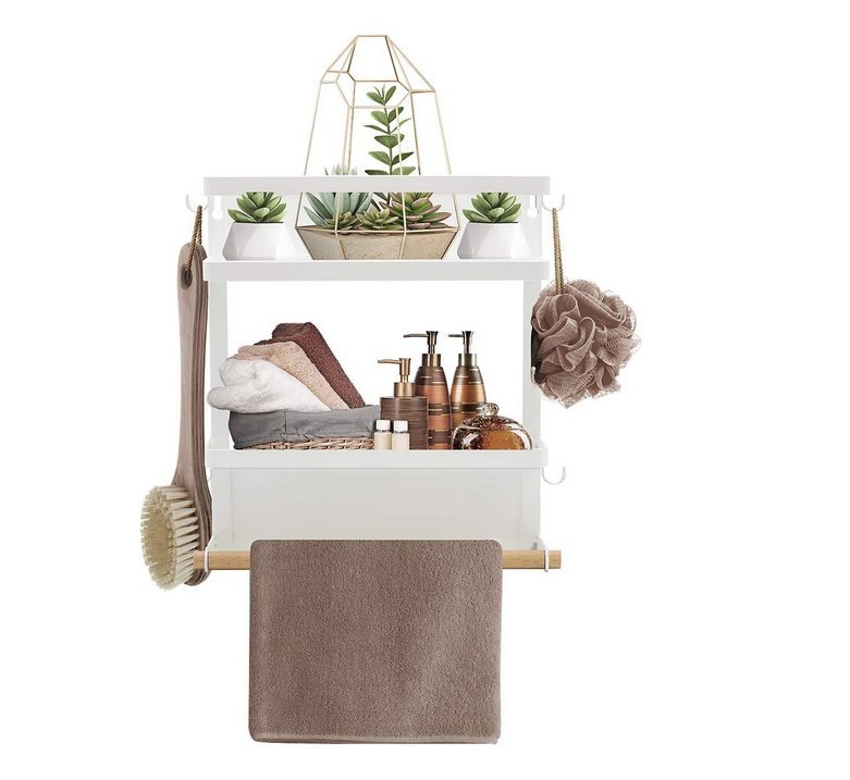 *多用途 - 架子上裝有香料,調味品,小罐子,鹽和胡椒粉,橄欖油,食譜,調味品,清潔用品,浴室洗護用品,精油,藥品等--多功能木棒,可用於紙巾卷,包裝紙,箔紙等--可移動的鉤子可將毛巾和輕巧的烹飪工具掛起來
