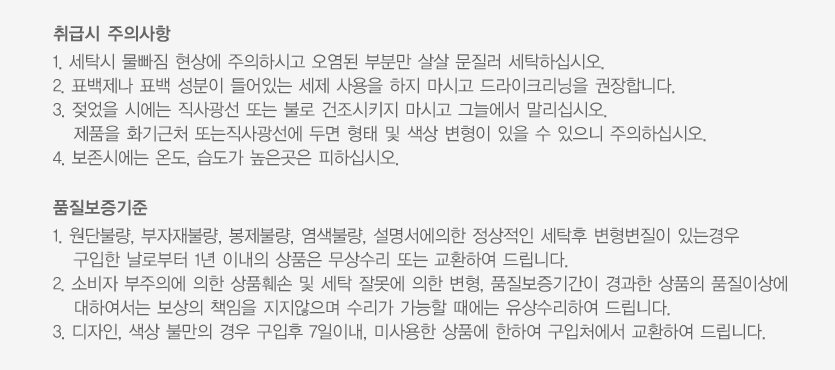 2.請勿使用漂白劑或含漂白劑的洗滌劑,建議乾洗。