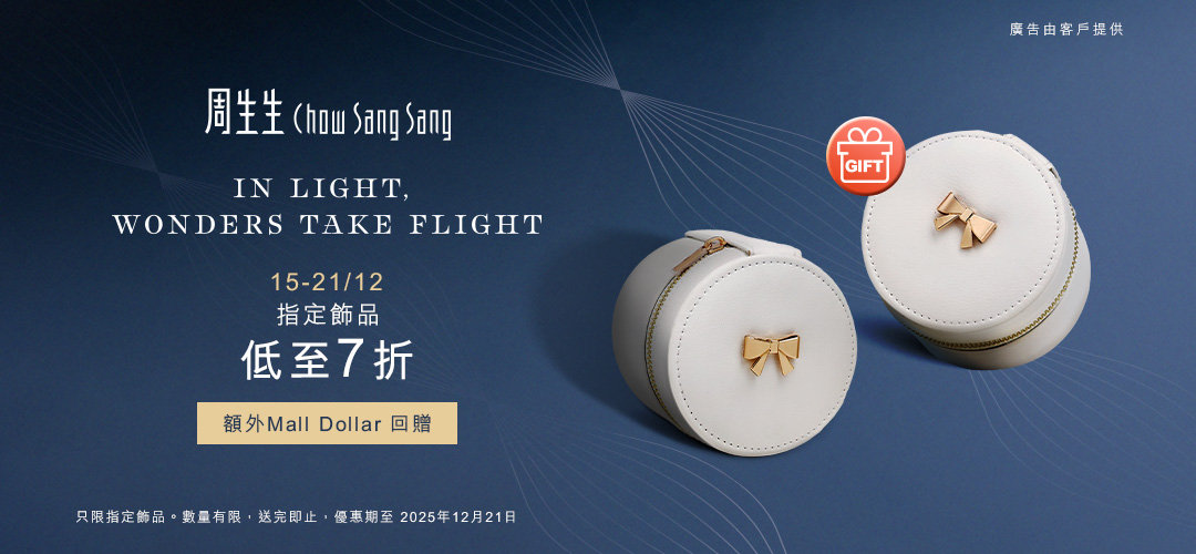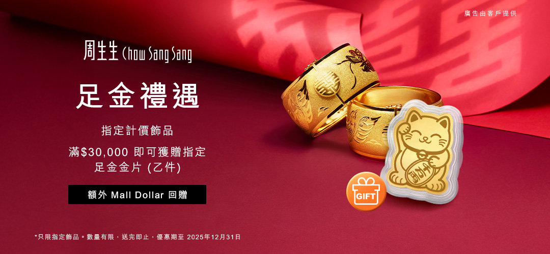 • 精選計價金飾全單享 95 折或免工費優惠,另享額外 Mall Dollar 回贈。