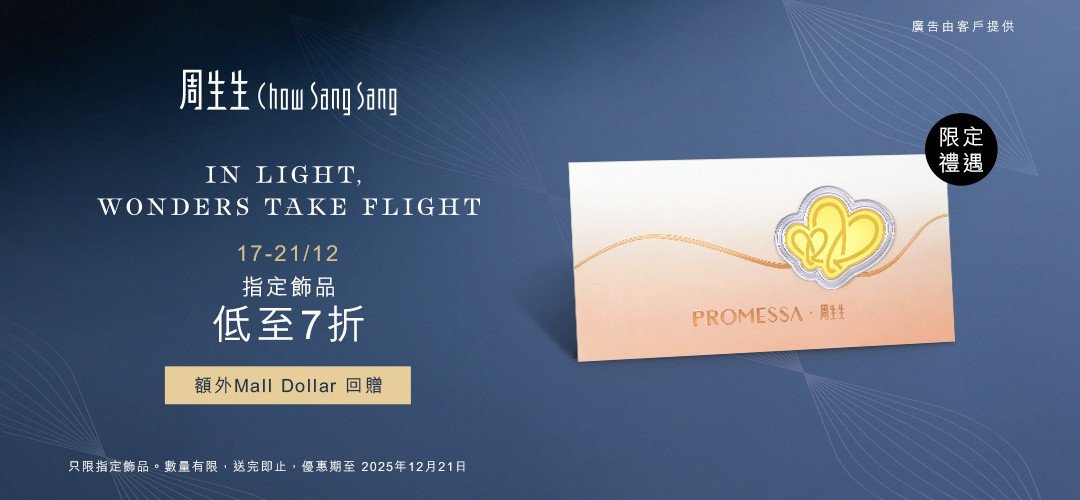 限時足金禮遇 17-21/12,消費滿 $8,800 即送 Promessa 同心足金金片乙件。